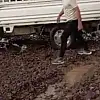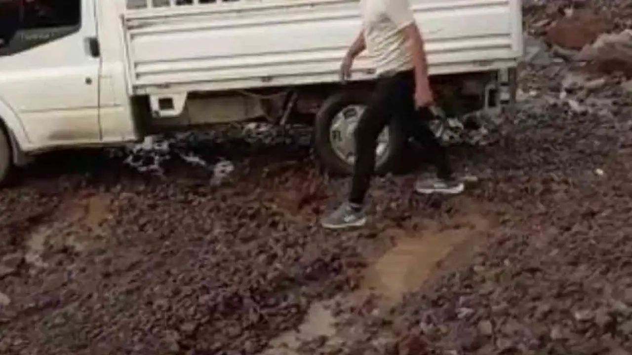 Iğdır'da sağanak yağış sonrası yaşanan sel nedeniyle köy yolu kapandı, iki araç mahsur kaldı.