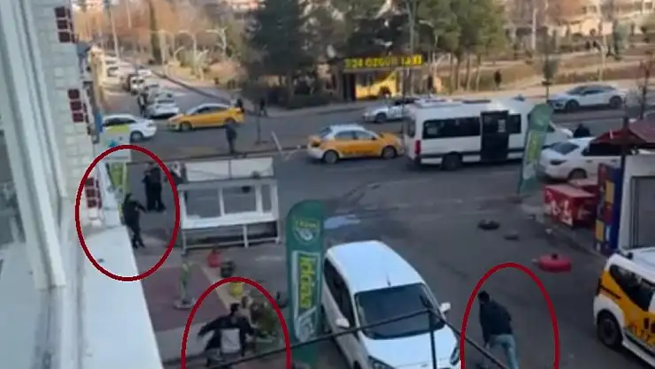 Silahlı kavga anı, cep telefonu kamerasına yansıdı. Görüntülerde silahlı şahısların birbirini kovalayarak peş peşe ateş ettikleri anlar yer aldı.