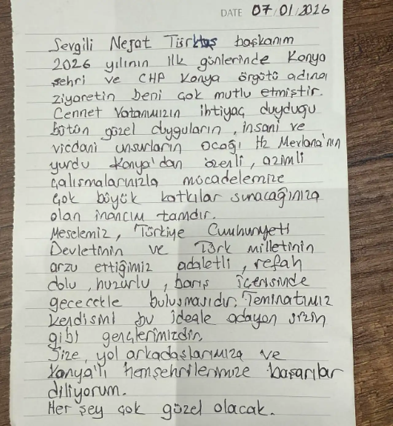 İmamoğlu, yol arkadaşlarına ve Konyalılara başarı dileklerini ileterek mektubunu “Her şey çok güzel olacak” sözleriyle tamamladı.