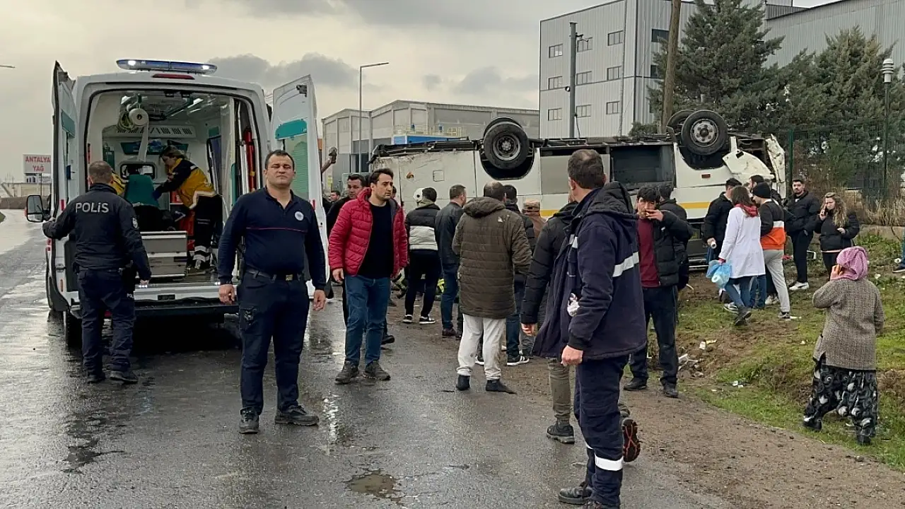Çevredekilerin ihbarı üzerine çok sayıda polis, itfaiye ve sağlık ekibi sevk edilen kazada, sürücü ile araçtaki 24 işçi yaralandı.