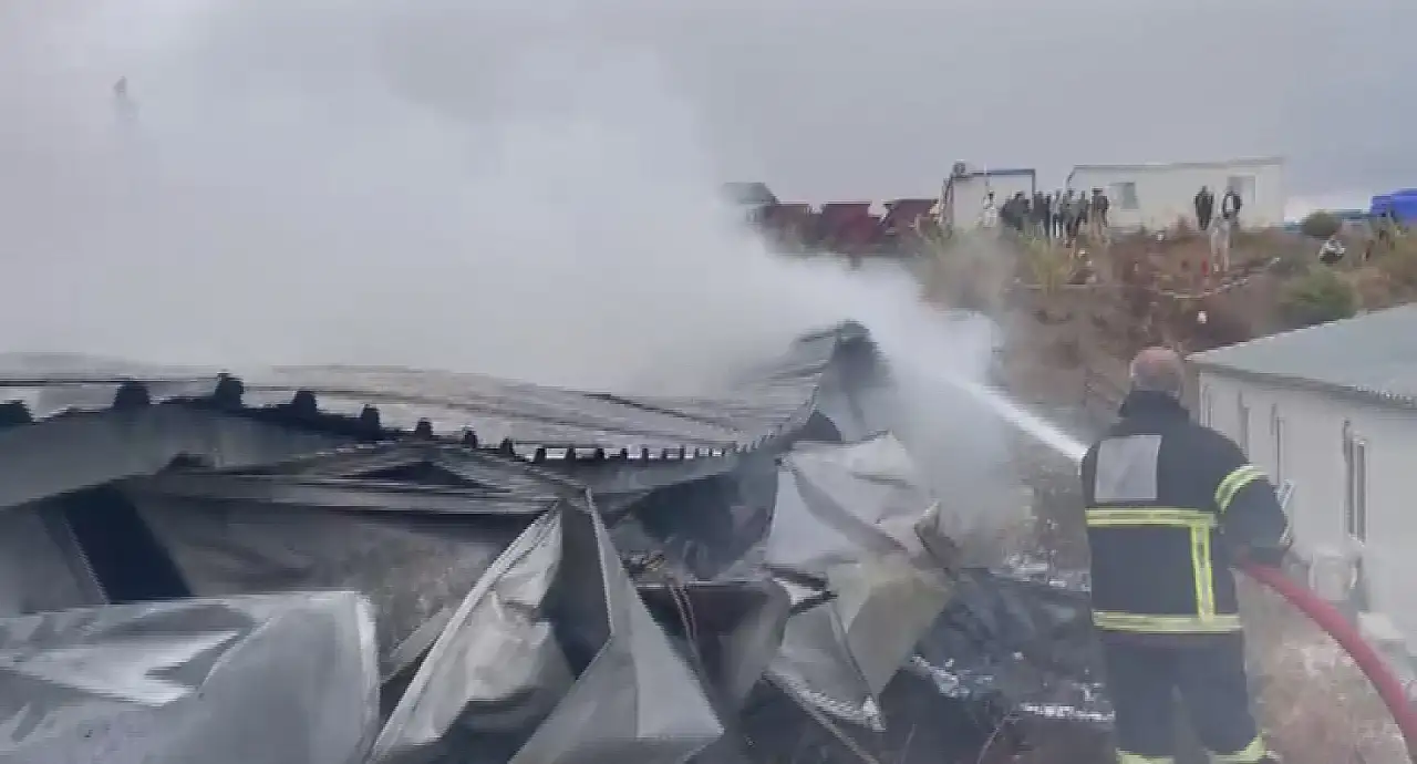 Hatay'ın Antakya ilçesinde işçilerin kaldığı konteyner yatakhanede yangın çıktı. Alevlerin sardığı yatakhane kullanılamaz hale geldi.