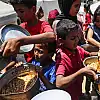 Soykırımcı İsrail ordusunun zulmü altındaki Gazze'deki Filistinlilere yemek dağıtıldı.