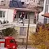 İtfaiye eri kediyi kurtarıp kendi düştü