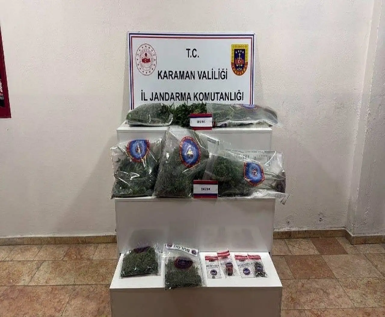 Karaman'da İl Jandarma Komutanlığı'nın denetimlerinde 17 dinamit, skunk, sentetik hap ve 62 kilo kaçak tütün ele geçirildi. 37 aranan şahıstan 6'sı tutuklandı.