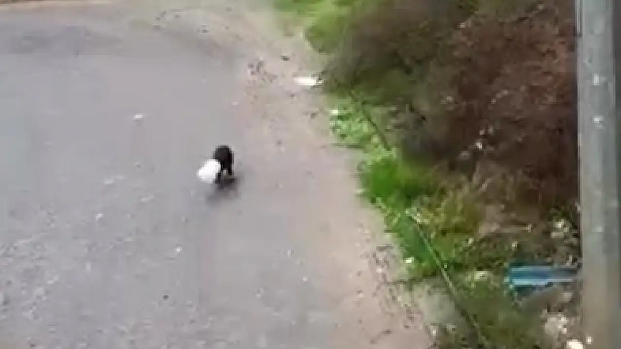 Yalova'nın Çiftlikköy ilçesinde, kafası plastik yoğurt kabına sıkışan bir yavru köpek, kamyon sürücüsünün müdahalesiyle kurtarıldı.