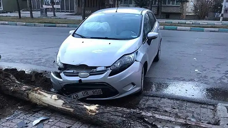Ayşin Y. (48) idaresindeki 48 UB 850 plakalı otomobil, İstasyon Caddesi'nde sürücünün direksiyon hakimiyetini kaybetmesi sonucu kaldırımdaki ağaca çarptı.