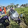 Öte yandan, kaza anı güvenlik kamerası tarafından kaydedildi. Görüntüde otomobilin kontrolden çıkarak kanala devrildiği anlar yer alıyor.