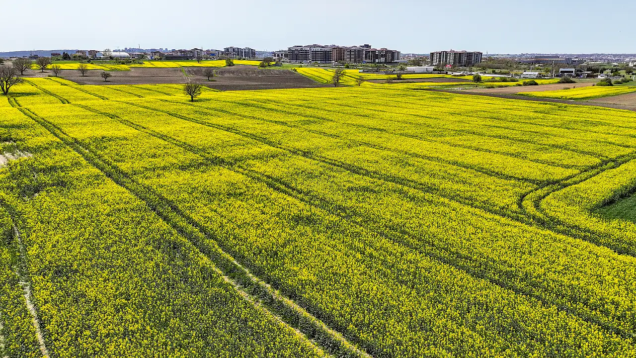 Tekirdağ'da kanolaların çiçek açmasıyla renklenen tarlalar, Tekirdağ-İstanbul kara yolunu kullanan sürücülere görsel şölen sunuyor.