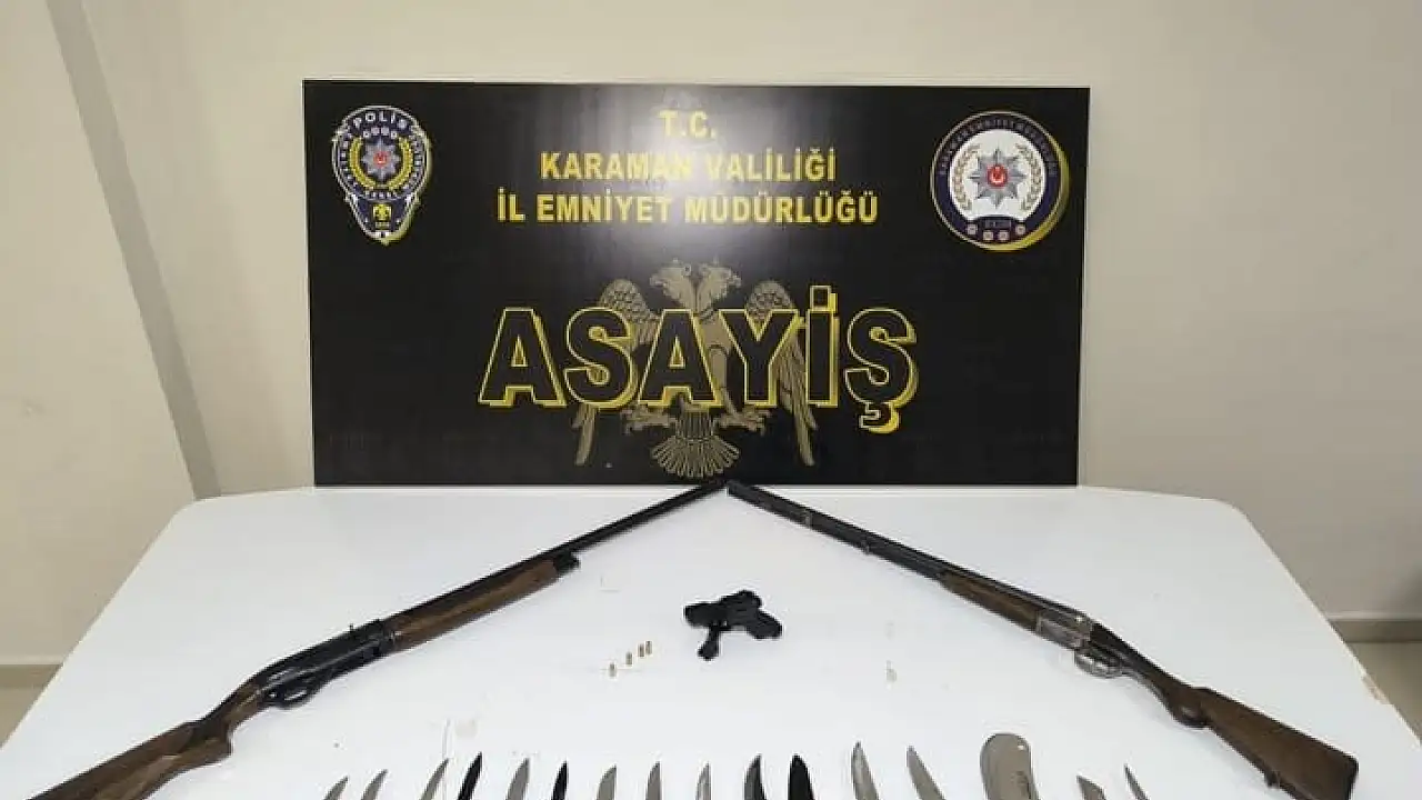 Karaman'da polisin yaptığı uygulamalarda ruhsatsız silahlar ve uyuşturucular ele geçirilirken, aranan 14 şahıstan 11'i tutuklandı.