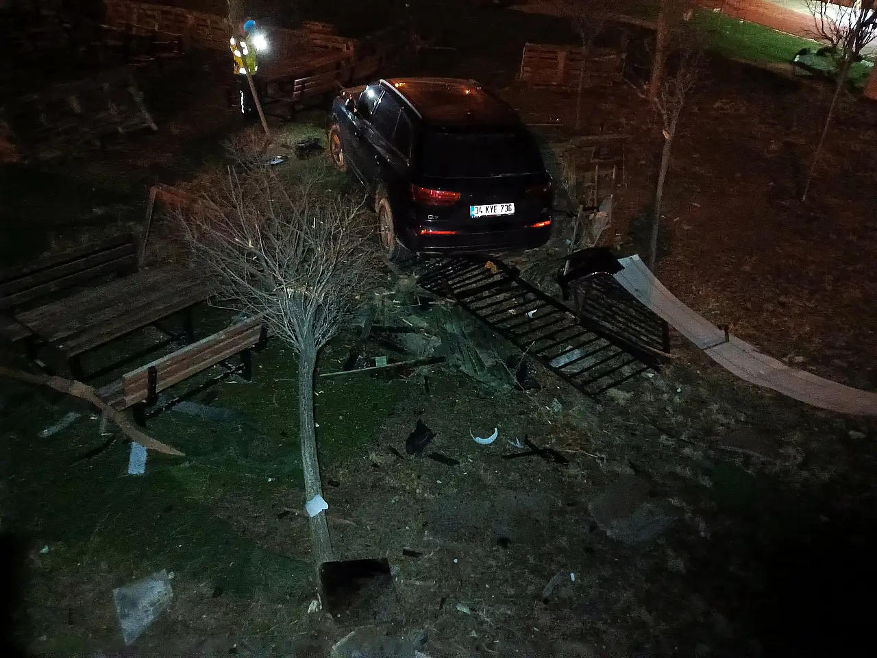 Savrulan araç önce kaldırımdaki aydınlatma direğine, ardından bahçe korkuluklarına ve bir ağaca çarptı. Çarpmanın etkisiyle devrilen engellerin ardından otomobil, bir kafenin bahçesine uçtu. Olay çevrede büyük panik yaşanmasına neden oldu.