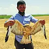 Koşarak tarlaya gelen Bilgeç, köpekleri kartalın çevresinden uzaklaştırdı. Kartalı, aracına koyarak evine götüren Bilgeç, yaralı hayvanı 2 gün boyunca besledi.
