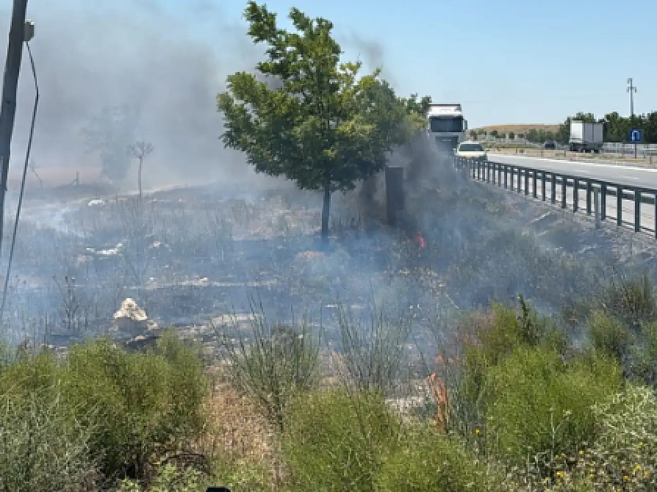 Yangını fark eden diğer sürücüler, tır şoförünü uyardı. Tırı yol kenarına çeken sürücü, çevredeki vatandaşların da yardımıyla araçtaki yangını büyümeden kontrol altına aldı.
