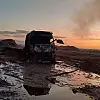 Konya'nın Karapınar ilçesinde park halindeki saman balyası yüklü tır yandı, 25 ton balya kül oldu.