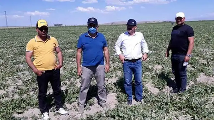 Karapınar Ziraat Odası Başkanı Durmuş Üner, geçen haftaki sert rüzgar ve ani değişen hava sıcaklığından zarar gören tarım arazilerini ziyaret ederek çiftçilerle görüştü.