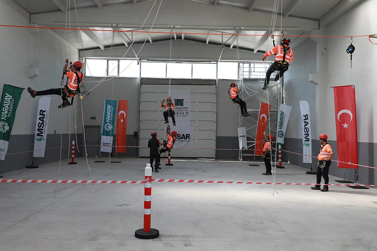 Karatay Belediyesi Afet İşleri Müdürlüğü bünyesinde oluşturulan 60 kişilik ekip, bugüne kadar “Afet ve Yangın Eğitimi” ile “Arama ve Kurtarma Eğitimi”ni başarıyla tamamladı. Şu anda ise “Temel iple Erişim Eğitimi Seviye-1” kapsamında yüksekte güvenli çalışma teknikleri üzerinde eğitim alıyor.