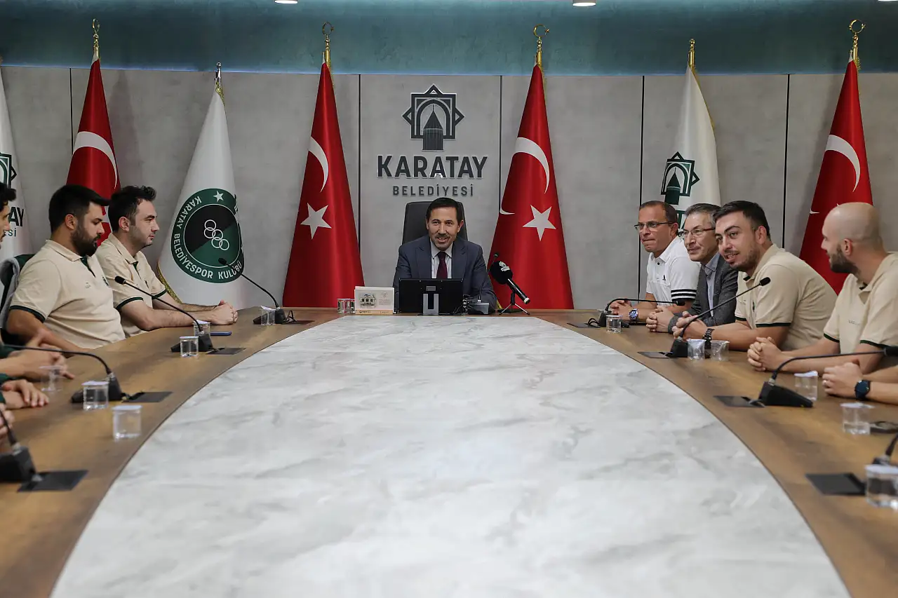 Karatay Belediyesi'nin destekleriyle kısa sürede önemli başarılar elde eden Karatay Belediyespor Kulübü Basketbol A Takımı, yeni sezon öncesi Karatay Belediye Başkanı Hasan Kılca'yı makamında ziyaret ederek moral buldu.