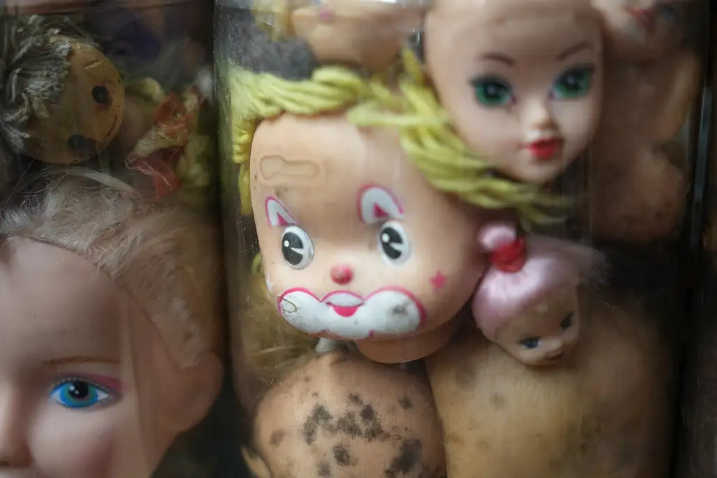 Kocaeli'de bir antikacı, yalnız yaşayan bir koleksiyonerin bit pazarlarından çöplere kadar her yerden 50 yıl boyunca topladığı 5 bin oyuncak bebek kafasını kavanoz ve akvaryumlarda sergiliyor görenlerin kimisi hayran kalırken kimisi ürperiyor.