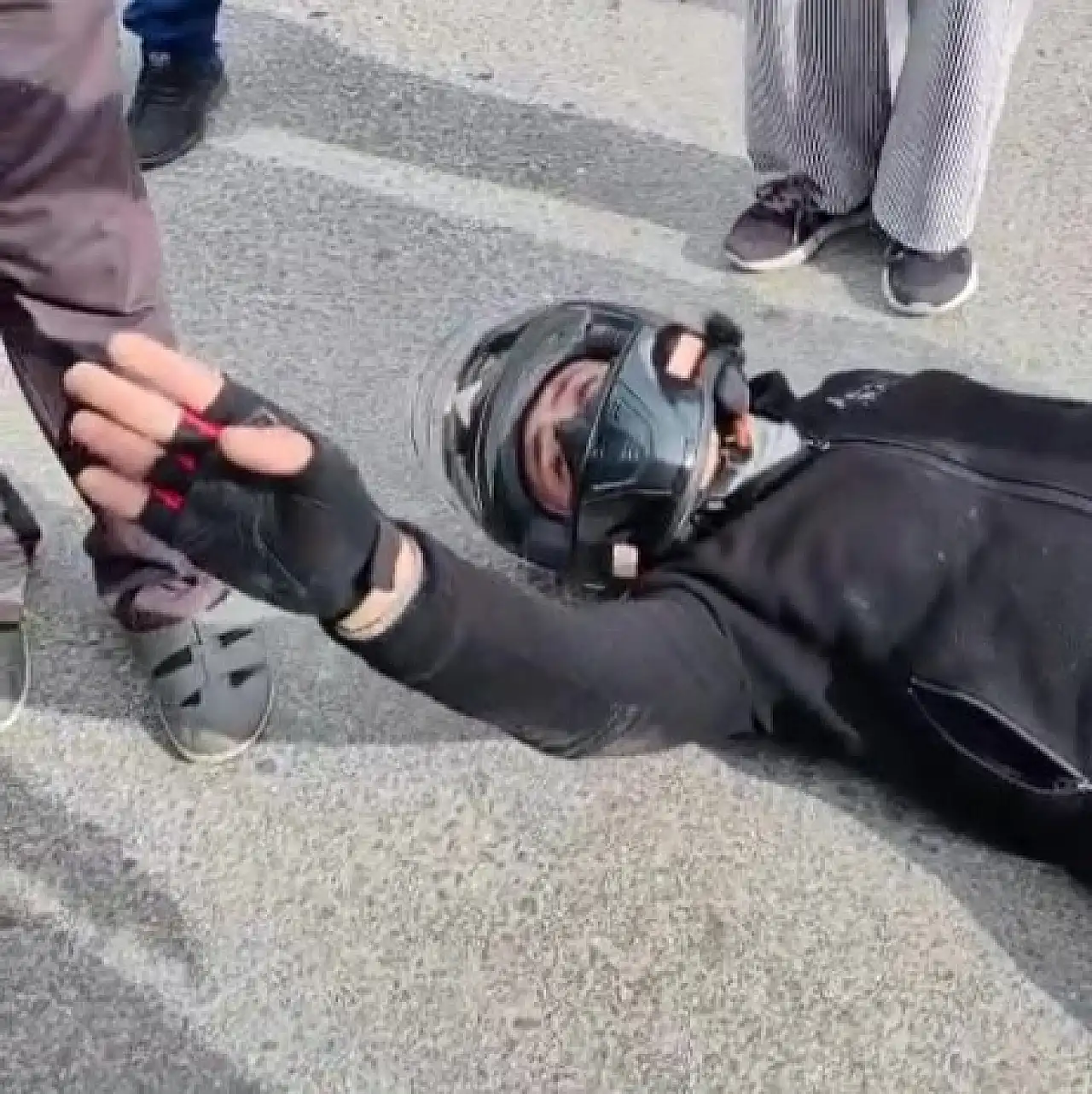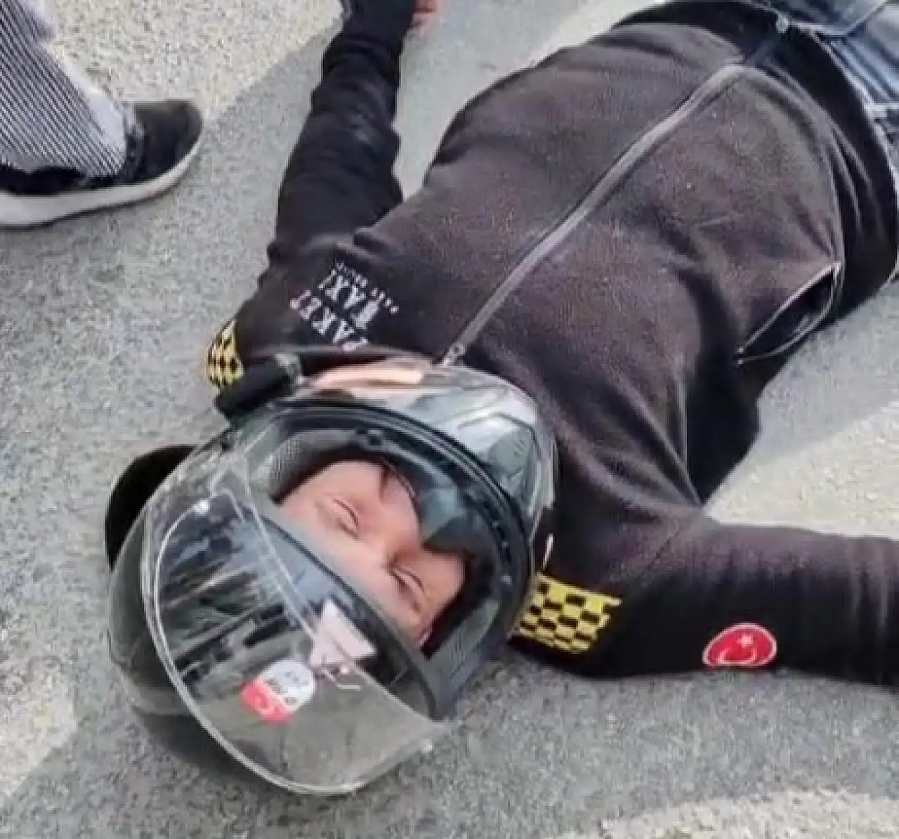 Bu sırada yerde acı içerisinde kıvranan motosiklet sürücüsü, çarpıştığı otomobilin sürücüsü ve küçük çocuğunun ağladığını fark edince kendi acını bir kenara bıraktı. Mümin Ş., "Ablam korkma. Ben iyiyim. Kolum bacağım ağrıyor sadece, çocuğa su içirin. Her şeyden önemlisi çocuk" diyerek durumunun iyi olduğunu, panik yapmamalarını istedi.