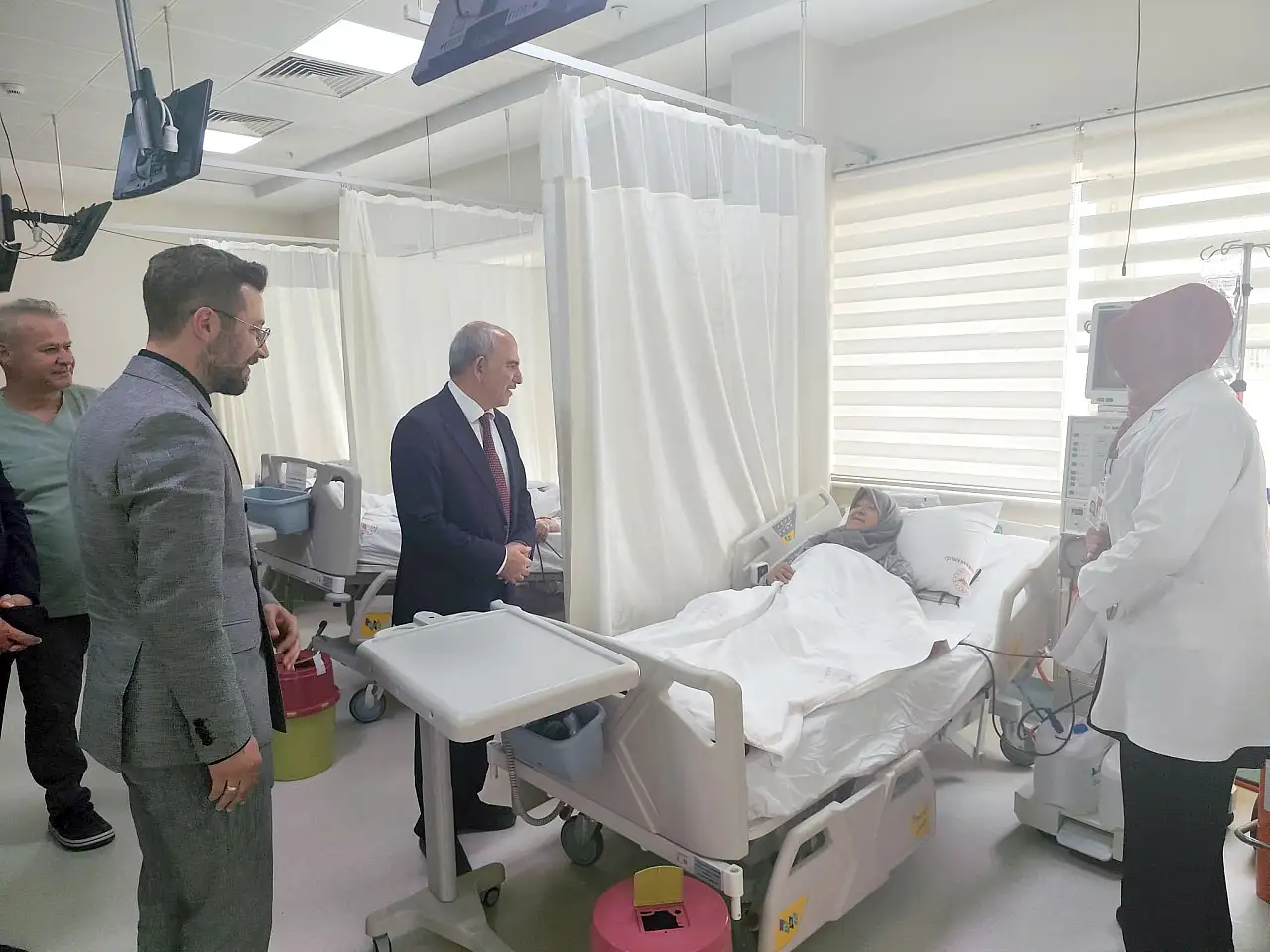 Çumra Devlet Hastanesi’nin kendi rolündeki sağlık hizmetlerini başarıyla yerine getirdiğine ve hastanede sunulan sağlık hizmeti kalitesinin her geçen gün arttığına dikkati çeken Prof. Dr. Koç, hastanede tedavi gören vatandaşlarla da sohbet ederek geçmiş olsun dileklerini iletti.