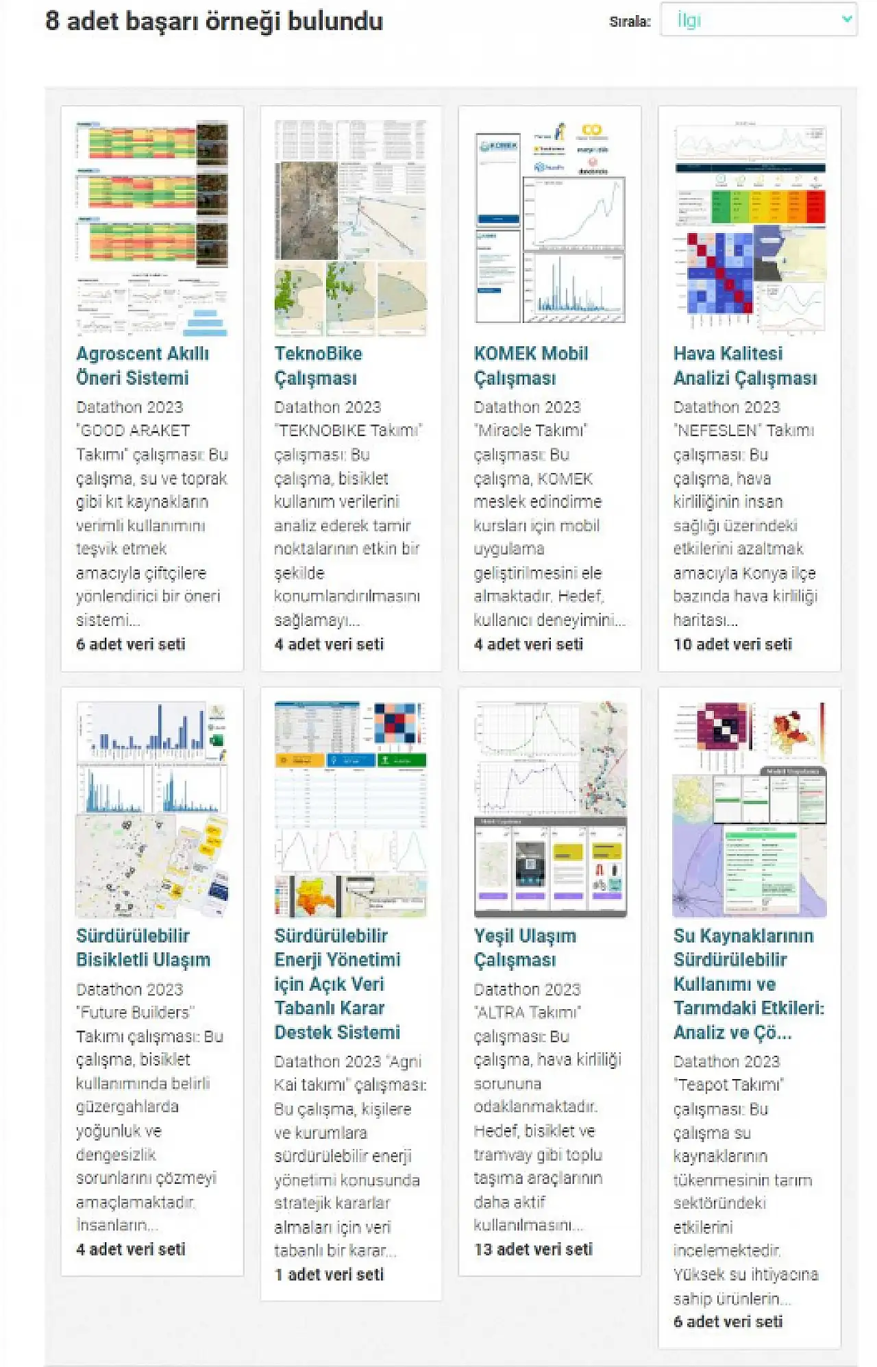 Açık veri temelli inovasyonu teşvik etmek amacıyla düzenlenen Datathon yarışmaları, yaratıcı proje fikirlerinin ve veri analizlerinin ortaya çıkmasına zemin hazırlıyor. Yarışmalarda geliştirilen projeler, portalda “Başarılı Örnekler” başlığı altında paylaşılırken, açık verinin somut faydaları da geniş kitlelere ulaşıyor.
