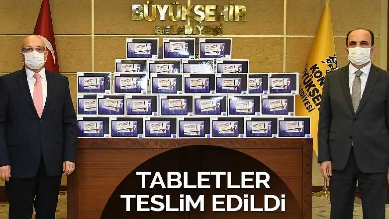 Konya Büyükşehir Belediyesi, Konya'da uzaktan eğitimi takip edecek ekipmana sahip olmayan öğrencilere dağıtılmak üzere İl Milli Eğitim Müdürlüğü'ne 10 bin tabletin teslimatını yaptı.