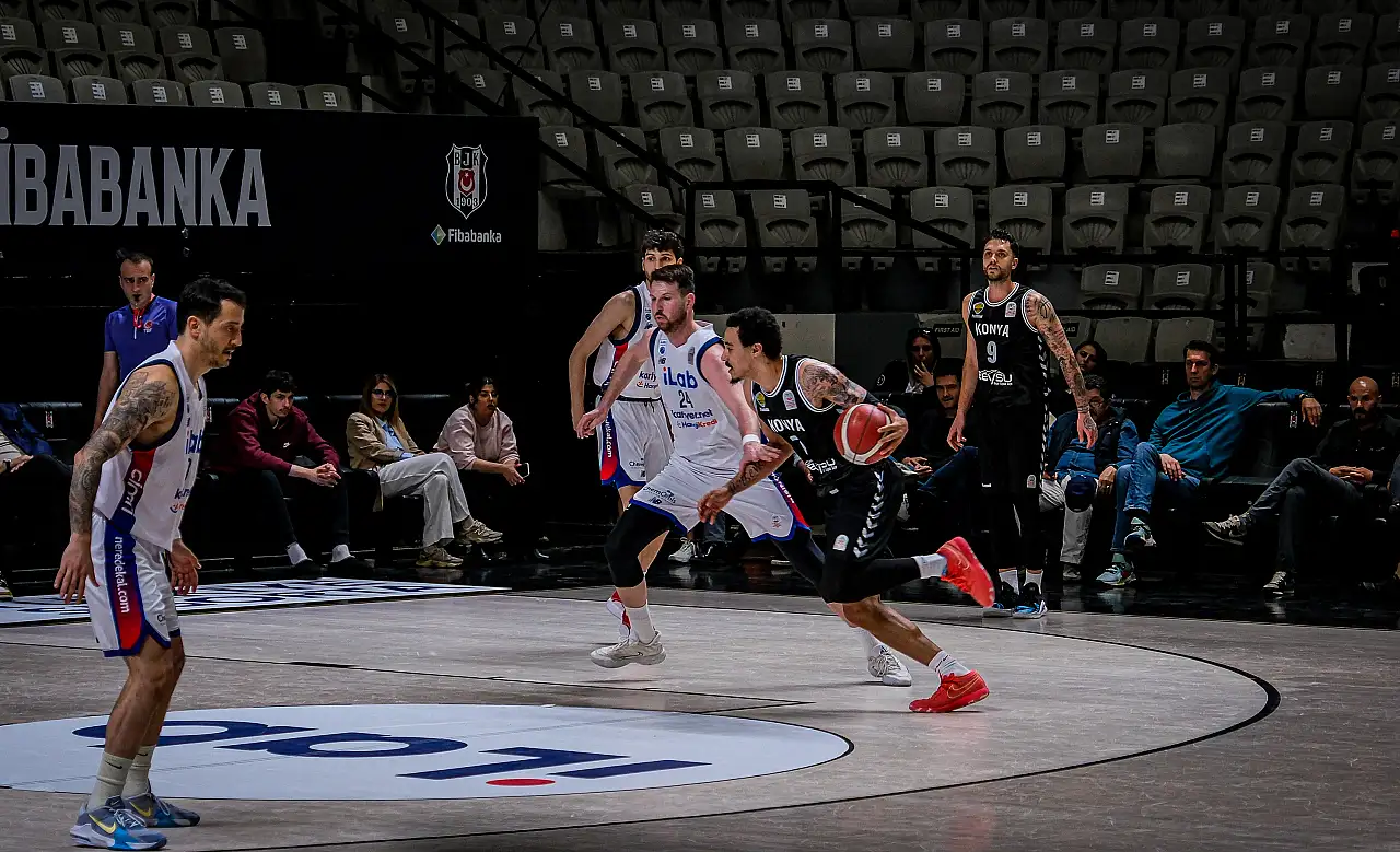 BJK Fibabanka Spor Kompleksi’nde oynanan mücadelede yüksek tempo ve heyecan öne çıkarken, her iki ekip de taraftarlarından alkış aldı. Maçın ilk periyodu 13-13 eşitlikle geçilirken, devre arasına 30-29 önde giren taraf Konya ekibi oldu.