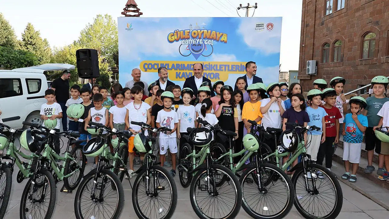 Konya Büyükşehir Belediye Başkanı Uğur İbrahim Altay, Konya İl Müftüsü Ali Öge ile birlikte 'Güle Oynaya Camiye Gel' projesi çerçevesinde yaz tatilinde 40 gün sabah namazına gidip bisiklet almaya hak kazanan çocuklarla bir araya geldi.