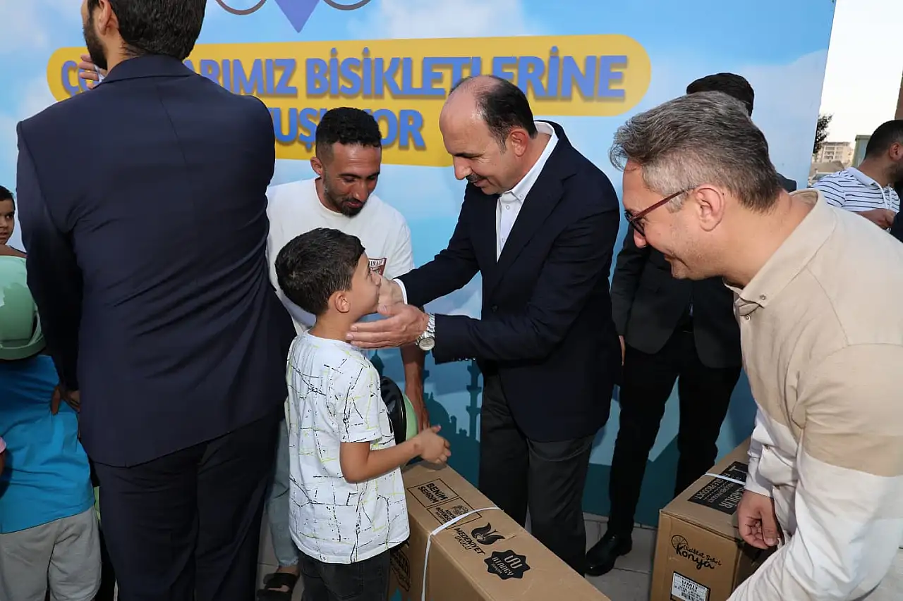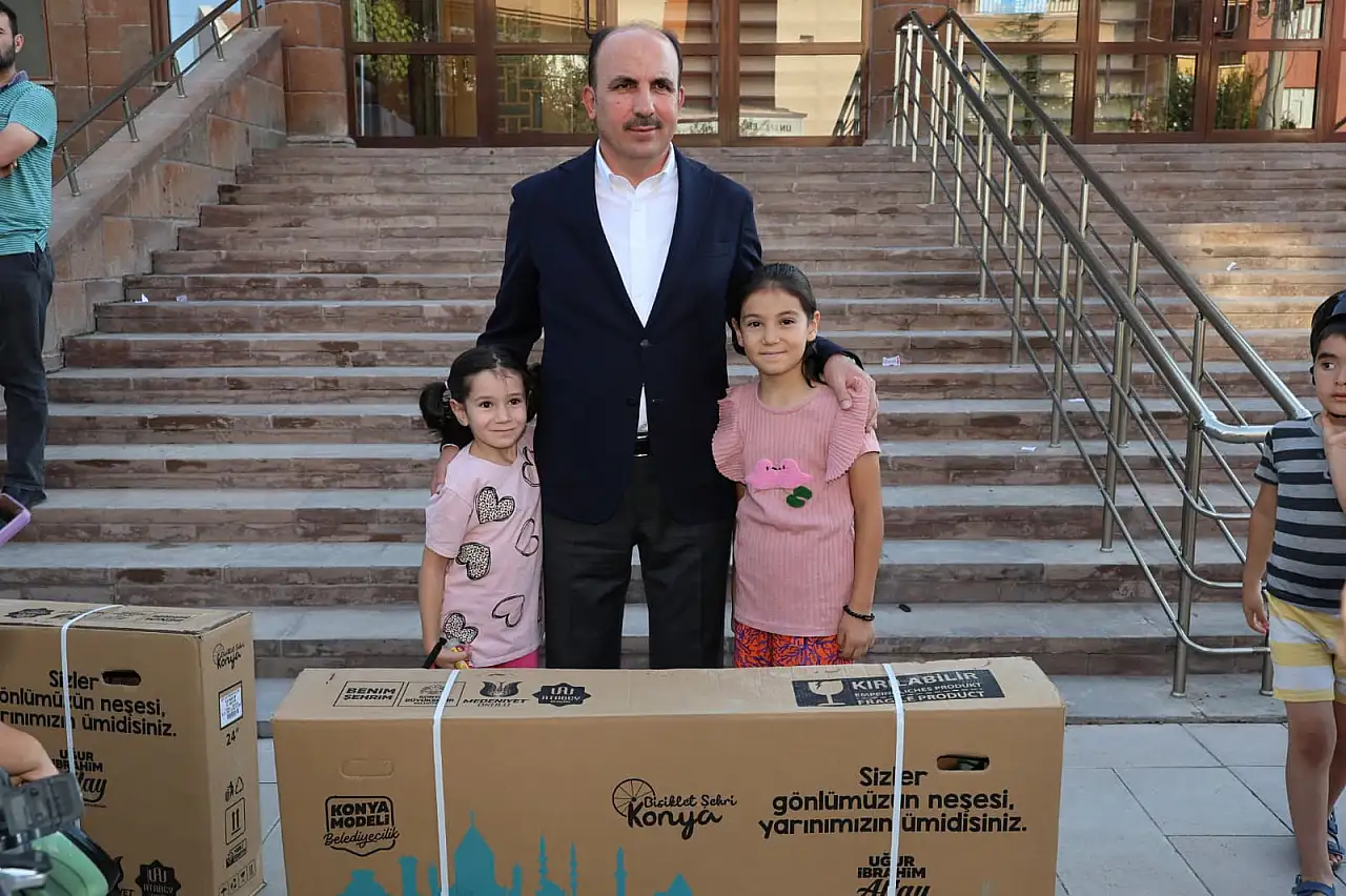 Konya Büyükşehir Belediye Başkanı Uğur İbrahim Altay, “Güle Oynaya Camiye Gel” projesi çerçevesinde yaz tatilinde bisiklet almaya hak kazanan çocuklara bisikletlerini hediye etti. Başkan Altay, Konya İl Müftüsü Ali Öge ile birlikte ilk olarak Sancak Mahallesi’nde bulunan Sancaktepe Camii’nde, daha sonra ise Kosova Mahallesi’nde bulunan İtisam Anadolu Camii’nde çocukların bisiklet sevincini paylaştı. Her iki camide de çocuklara seslenen Başkan Altay, çocukların 40 gün boyunca önemli bir irade göstererek camileri şenlendirdiklerini belirterek, özellikle çoğu zaman onlara eşlik eden annelere teşekkürde bulundu.