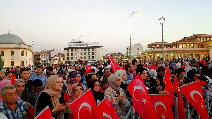 Konya'da 15 Temmuz Demokrasi ve Milli Birlik Günü anma etkinlikleri kapsamında Konya Mevlana Meydanı’nda kutlamalar başladı. Mehter Takımı ile başlayan yürüyüş meydandaki kutlamalar ile devam ediyor. Canlı yayın ile şehirlere bağlanan ve Türkiye'nin ayağına vurulan prangaları çekip attığını söyleyen Erdoğan "Allahın izniyle 15 temmuz girişimini tetiklemeye kimsenin gücü yetmeyecektir. Gafillerin kıraatı yetmez. 15 Temmuzun tekrarlanmasına ne biz ne de milletimiz izin vermeyecektir. Bizim emeğimiz fikrimiz ve gayemiz vatanımızın ikbali ve milletimizin İstikbalidir" şeklinde konuştu. Cumhurbaşkanı Erdoğan'ın açıklamalarının ardından konuşmalarını gerçekleştirmek üzere kürsiye çıkan Konya Valisi Vahdettin Özkan, “15 Temmuz darbe girişimi medeniyetimizden sudur edip gelen sevgiye, barışa, güzelliklere, paylaşımlara, adalete karşı bir meşrebi taassuptur. Bu taassubun fiil haline gelmesi ve toplumun yüzde 1’inden az olan kesimin gizli, saklı, medeniyetimizle bağdaşmayan, bin bir türlü desise kurularak bütün devletin kurumlarına adeta hakim olması ve bunun meydana getirmiş olduğu bir patlamanın ifadesidir." dedi.