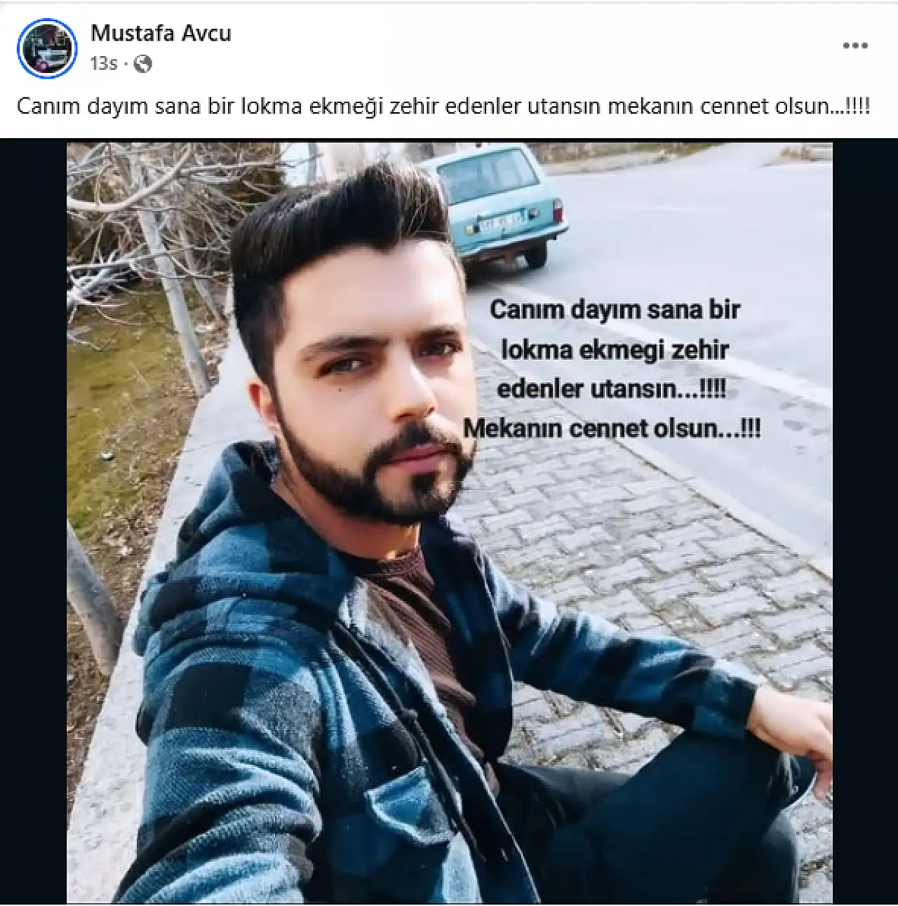Genç adamın yaşamına son vermesinin ardından ailesi yasa boğulurken, dayısı Mustafa Avcu’nun sosyal medyada yaptığı paylaşım dikkat çekti.
