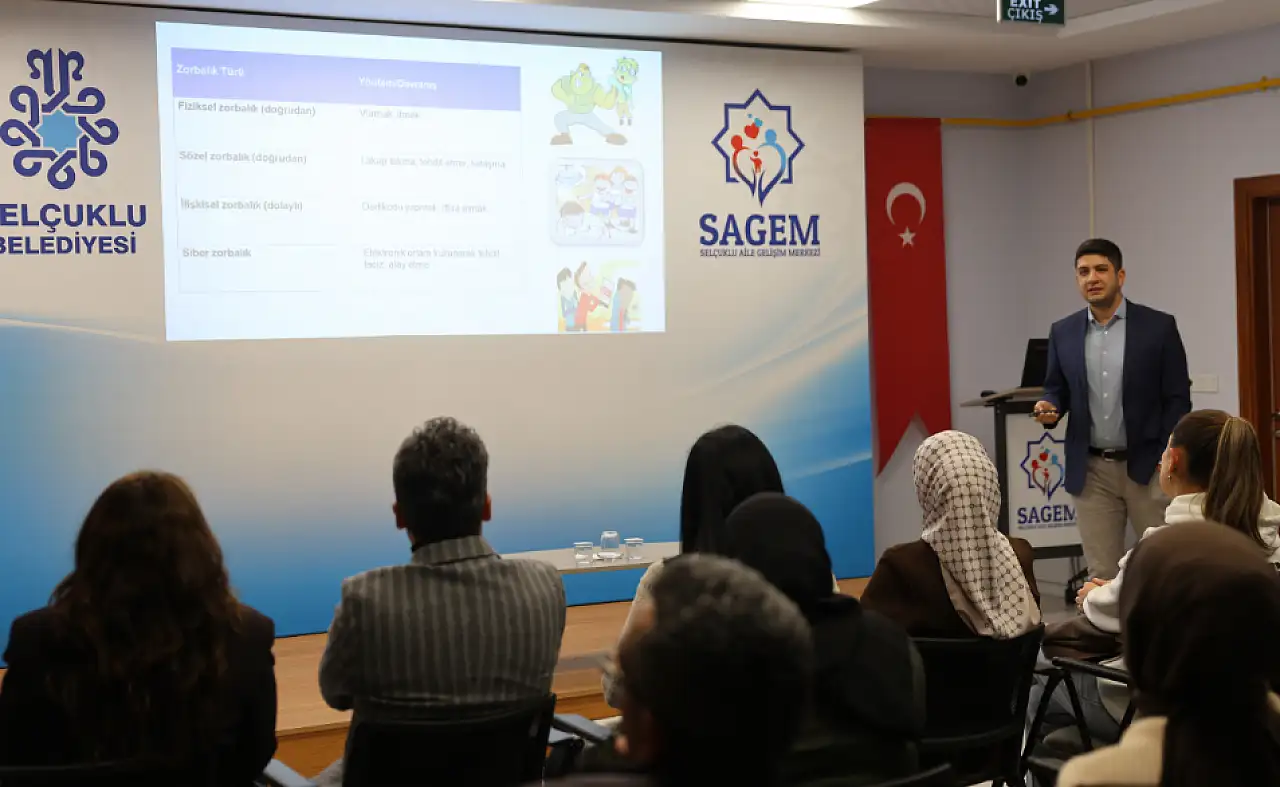 Selçuklu Aile Gelişim Merkezi (SAGEM), ailelerin günlük yaşamda sıkça karşılaştığı önemli sorunlardan biri olan akran zorbalığı konusunda farkındalık oluşturmak amacıyla bilgilendirme semineri düzenledi.