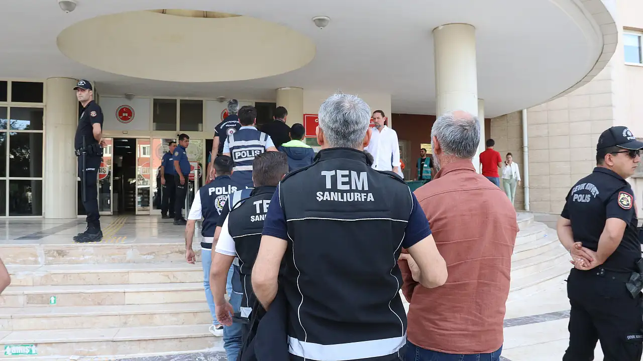 Milli İstihbarat Teşkilatı (MİT), Emniyet Genel Müdürlüğü (EGM) ve Şanlıurfa Cumhuriyet Başsavcılığı koordinesinde, terör örgütü PKK'nın hücre yapılanmasına yönelik operasyonda gözaltına alınan 51 zanlı adliyeye götürüldü,