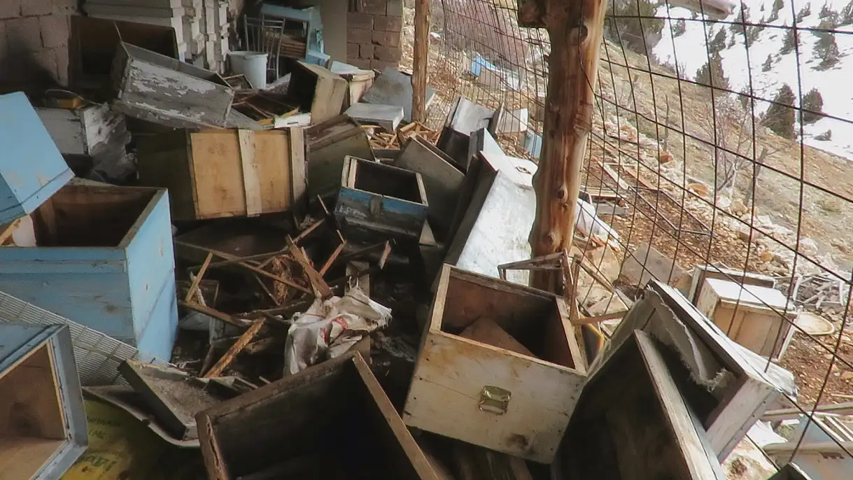 Konya'nın Taşkent ilçesindeki 2 bin rakımlı yaylalarda 'hanay' adı verilen taş yapılara giren ayı, yüzlerce arı kovanını parçaladı. Demirleri söküp çatıyı delen ayı üreticiyi zarara uğrattı arıcılar acil önlem çağrısı yaptı.