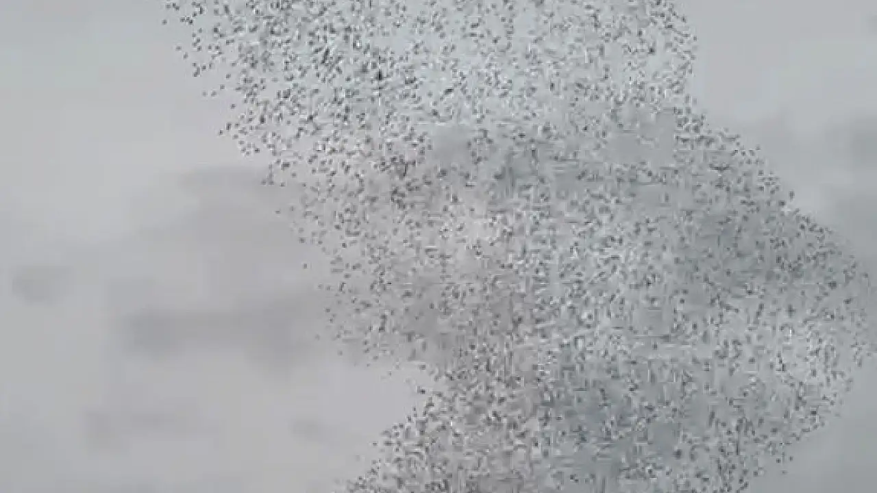 Konya'nın Karapınar İlçesine bağlı Eşekkıran mevkiinde yaşanan olayda gökyüzünde bir araya gelerek senkronize şekilde süzülen binlerce sığırcık, bölge halkına adeta görsel bir şölen sundu.