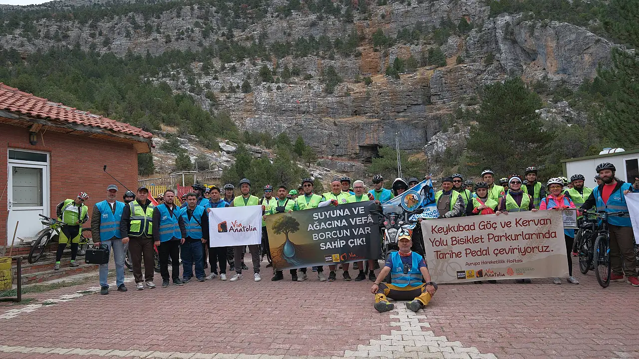 “Keykubad’ın İzinde Pedallıyoruz!” etkinliği, aynı zamanda çevre bilincine de dikkat çekti. “Suyuna ve Ağacına Vefa Borcun Var, Sahip Çık!” temasıyla yaşanan kuraklık ve orman yangınlarına karşı farkındalık yaratıldı.