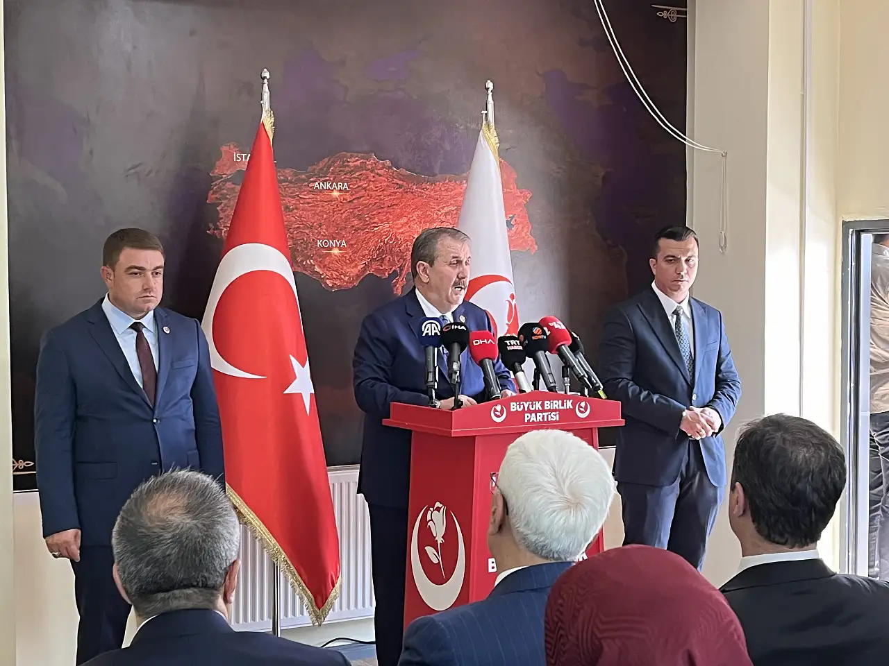 BBP Genel Başkanı Mustafa Destici, birtakım ziyaretler için Konya'ya geldi. Partisinin İl Başkanlığında basın mensuplarına açıklamalarda bulunan Destici, kamuda çalışan yaklaşık 600 bin işçinin sözleşmesinin el sıkışmayla sonuçlandığını belirtti. Destici, "Şimdi memurlarımız masada ve 3 milyondan fazla memurumuz ve bir de bunlara ilaveten belki bu sayıda memur emeklimizi ilgilendiren toplu sözleşme görüşmeleri maalesef uyuşmazlıkla sonuçlandı. Ve şu anda top hakem kurulunda.