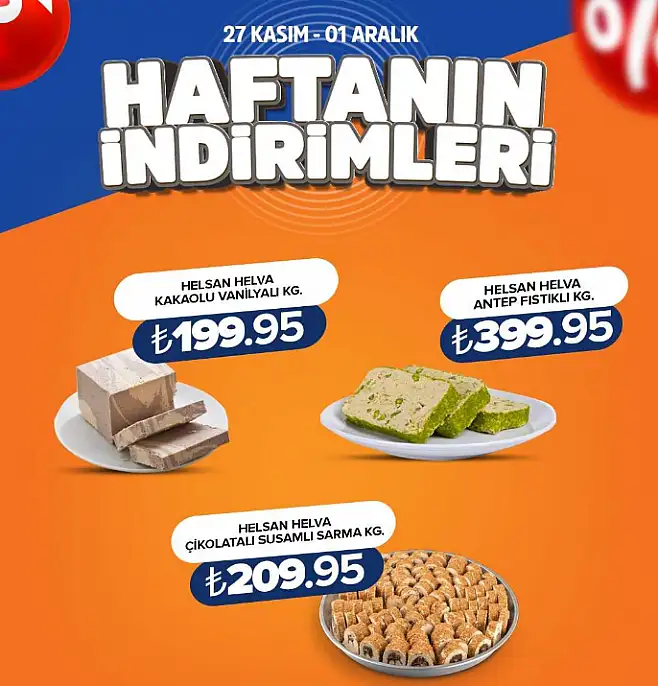 Tat Barbunya Pilaki 400 gr 49,95 TL, Tat Garnitür 550 gr 54,95 TL, Ülker Pötibör 800 gr 69,95 TL, Avşar Maden Suyu 24’lü 139,95 TL ve İçim 1 lt Meyve Suyu Çeşitleri 29,95 TL fiyatlarla raflarda yerini aldı.