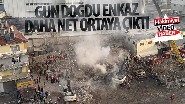 Konya'da çöken binanın enkazı günün ilk ışıklarıyla böyle görüntülendi