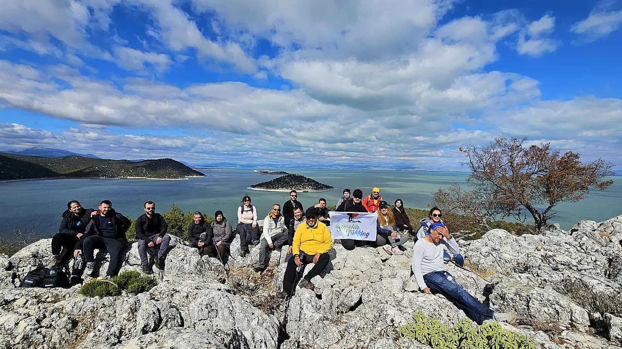 Yeşildağ İskeleden teknelerle adaya geçip keşiş yolculuğuna başladıklarını dile getiren Büyükkafalı, “Önce taş balkondan muhteşem manzarada fotoğraflar çekip manzaranın keyfine vardık. Sonra mağaraya gidip yarasalarla dolu ve içinde roma dönemi kalıntıların olduğu mağarayı gezip ilk tepeye tırmandık.” ifadelerini kullandı.