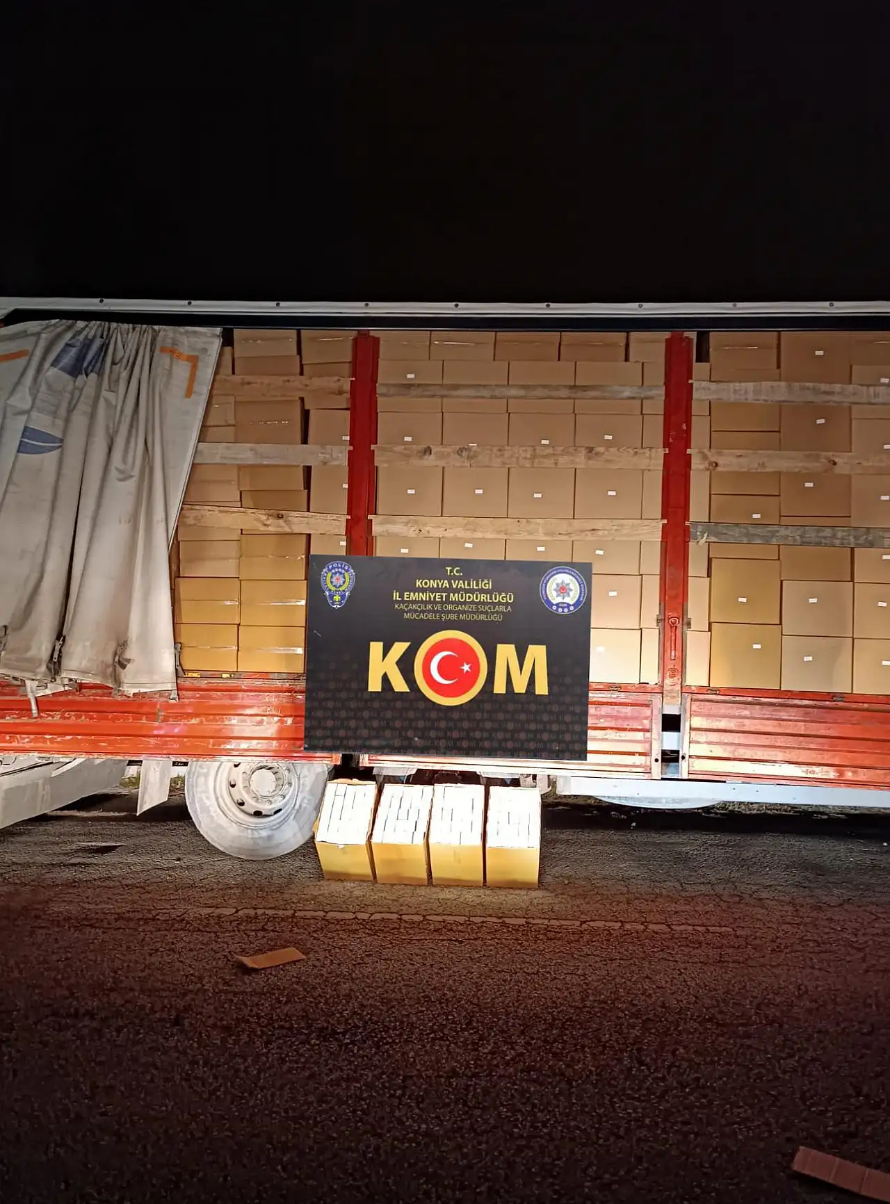 Konya Emniyet Müdürlüğü'ne bağlı Kaçakçılık ve Organize Suçlarla Mücadele Şube Müdürlüğü ekiplerinin yaptıkları çalışmalar sonrası, piyasa değeri yaklaşık 8 milyon 750 bin TL olan 7 milyon 100 bin adet kaçak makaron ele geçirildi.