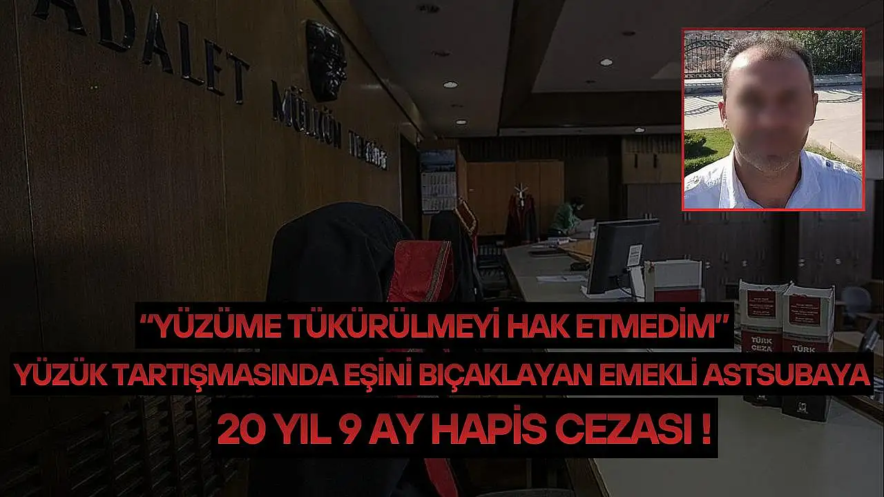 Konya'da 2024 yılında yaşanan olayda, emekli astsubay İsmail İ., boşanma aşamasındaki eşi Ayşe İ.'yi yüzük meselesinden çıktığı iddia edilen tartışmada 7 yerinden bıçaklayarak ağır yaralamıştı. Olaya ilişkin görülen karar duruşmasında, sanık İsmail İ. hakkında çeşitli suçlardan toplamda 20 yıl 9 ay hapis cezası verildi.