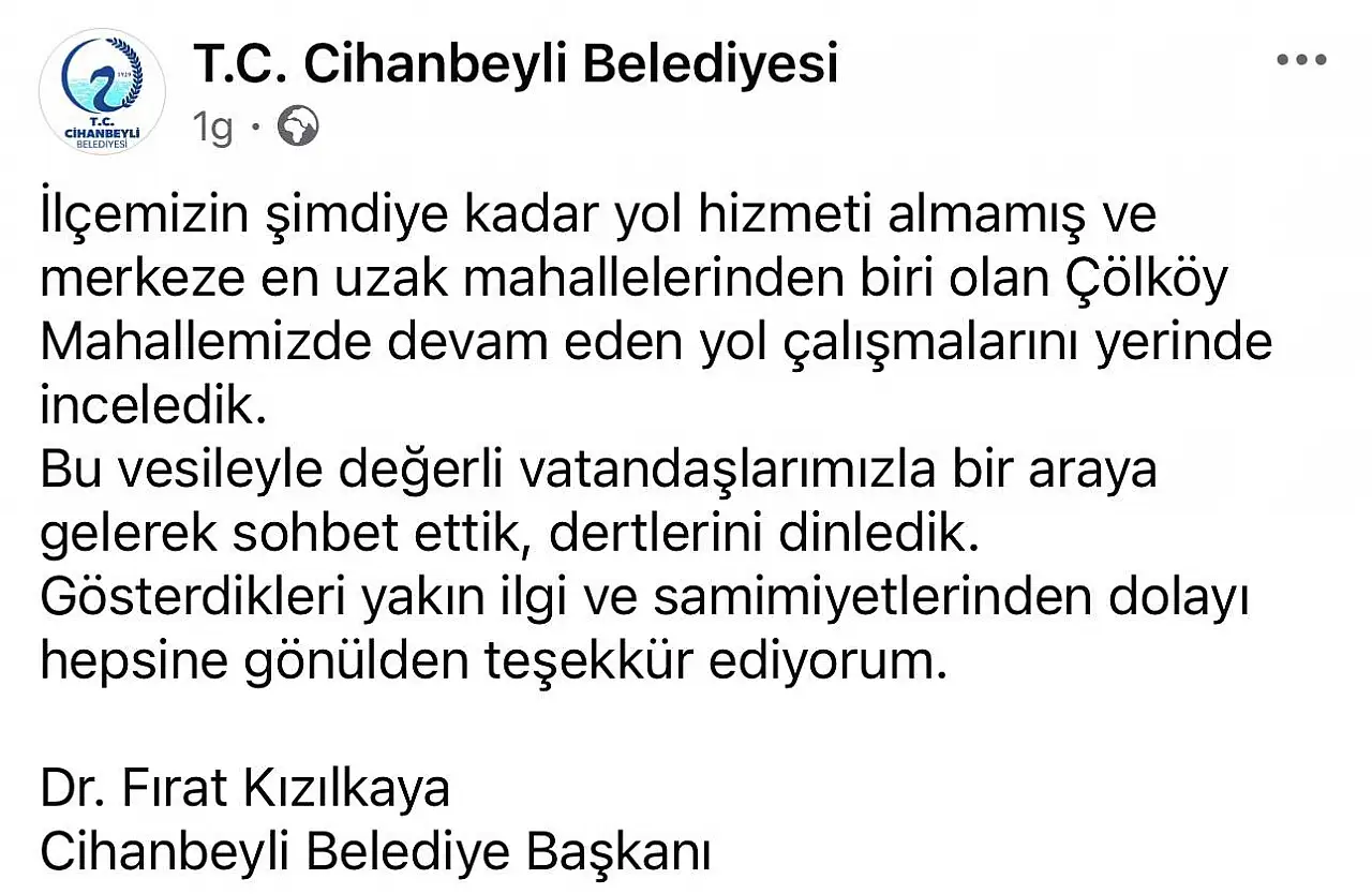 İŞTE CİHANBEYLİ BELEDİYESİNİN O PAYLAŞIMI: