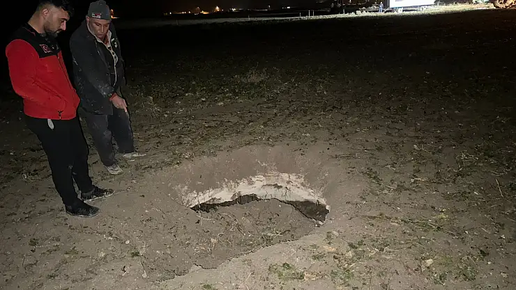 Söz konusu 100 dekarlık tarla alanında, çiftçinin çalışmaları sırasında yaklaşık 2 metre çapında ve 3 metre derinliğinde bir obruk meydana geldi.
