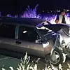 Kaza sonucu, sürücü ile araçtaki O.A. ve T.A. yaralandı.