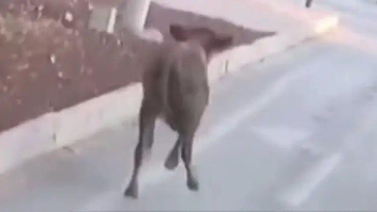 Araçlarla birlikte trafikte ilerleyen danayı başka bir araçta bulunan vatandaş cep telefonu ile görüntüledi. Araçların yanında koşturan dana yaya geçidinde bekleyen vatandaşları ise korkuttu.
