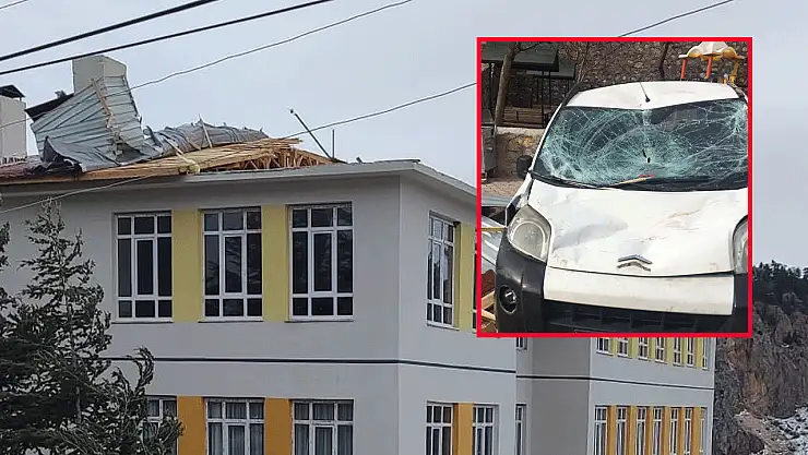 Fırtınanın en ağır zararı ise Muzzaffer Özlen İlkokulu’nda meydana geldi. Şiddetli rüzgârın etkisiyle okulun çatısı uçtu. Olay sırasında okul çevresinde bulunan bazı araçlarda maddi hasar oluştu.