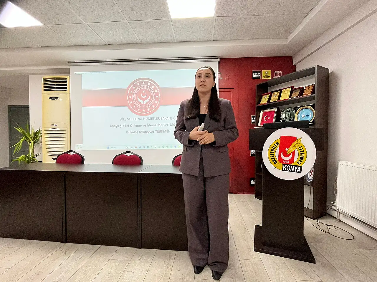 Eğitimde Konya Aile ve Sosyal Hizmetler İl Müdürlüğü’ne bağlı Şiddet Önleme ve İzleme Merkezi (ŞÖNİM) Psikoloğu Münevver Türkmen, gazetecilere kadına yönelik şiddetle mücadele ve erken yaşta evliliklerin önlenmesiyle ilgili kapsamlı bilgiler aktardı.