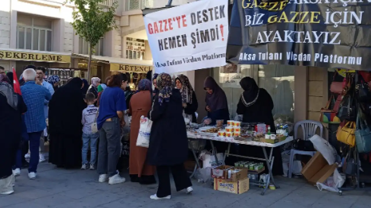 Konya'da Aksa Tufanı Vicdan Platformu tarafından 19-20 Eylül tarihlerinde Türbeönü Çarşısı'nda Gazze yararına kermes yapıldı.