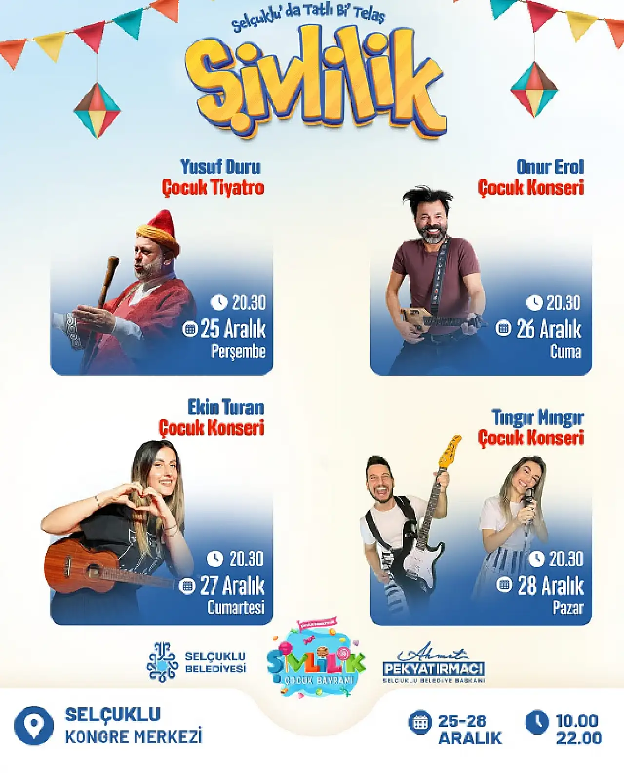 Konya'da geleneksel hale gelen 'Şivlilik Çocuk Bayramı' etkinliği 25 Aralık tarihinde yeniden tüm şehre renk katacak. Selçuklu Belediye Başkanı Ahmet Pekyatırmacı, 4 gün sürecek etkinliklere, çocukları ve aileleri davet etti.