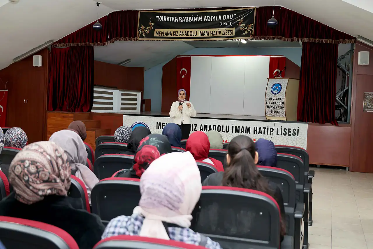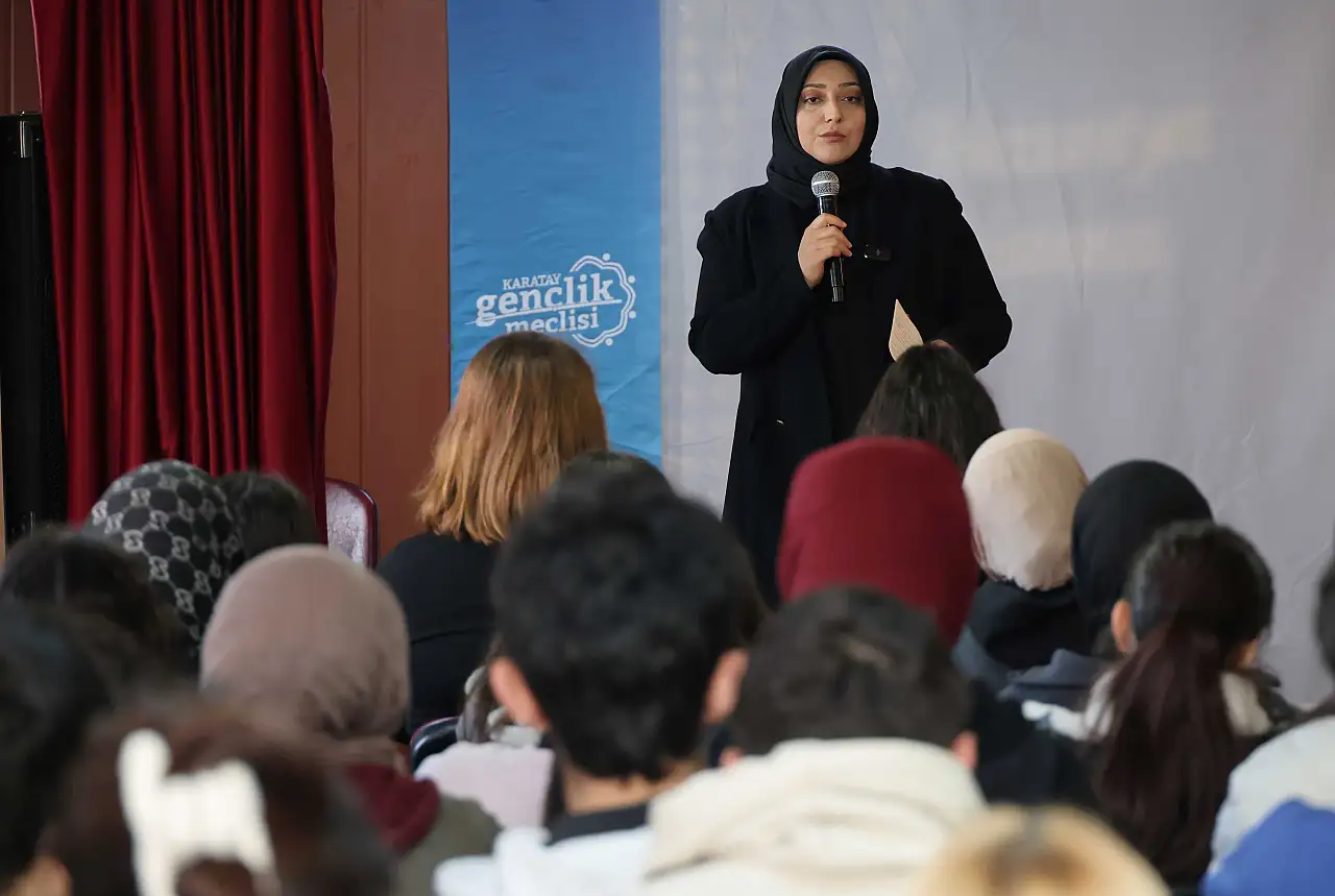 Karatay Gençlik Meclisi’nin organizasyonuyla gerçekleştirilen program kapsamında, alanında donanımlı ve mesleki tecrübeye sahip uzmanlar; Mevlana Kız İmam Hatip Lisesi, 15 Temmuz Şehitleri Anadolu Lisesi ve Celaleddin Karatay Tarım Mesleki ve Teknik Anadolu Lisesi’nde öğrencilerle bir araya geldi.